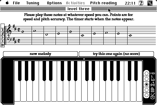 has excercises I can practice with, including pitch identification and scales. I don't have a MIDI controller compatible with the mac yet, but works as well with the mouse.